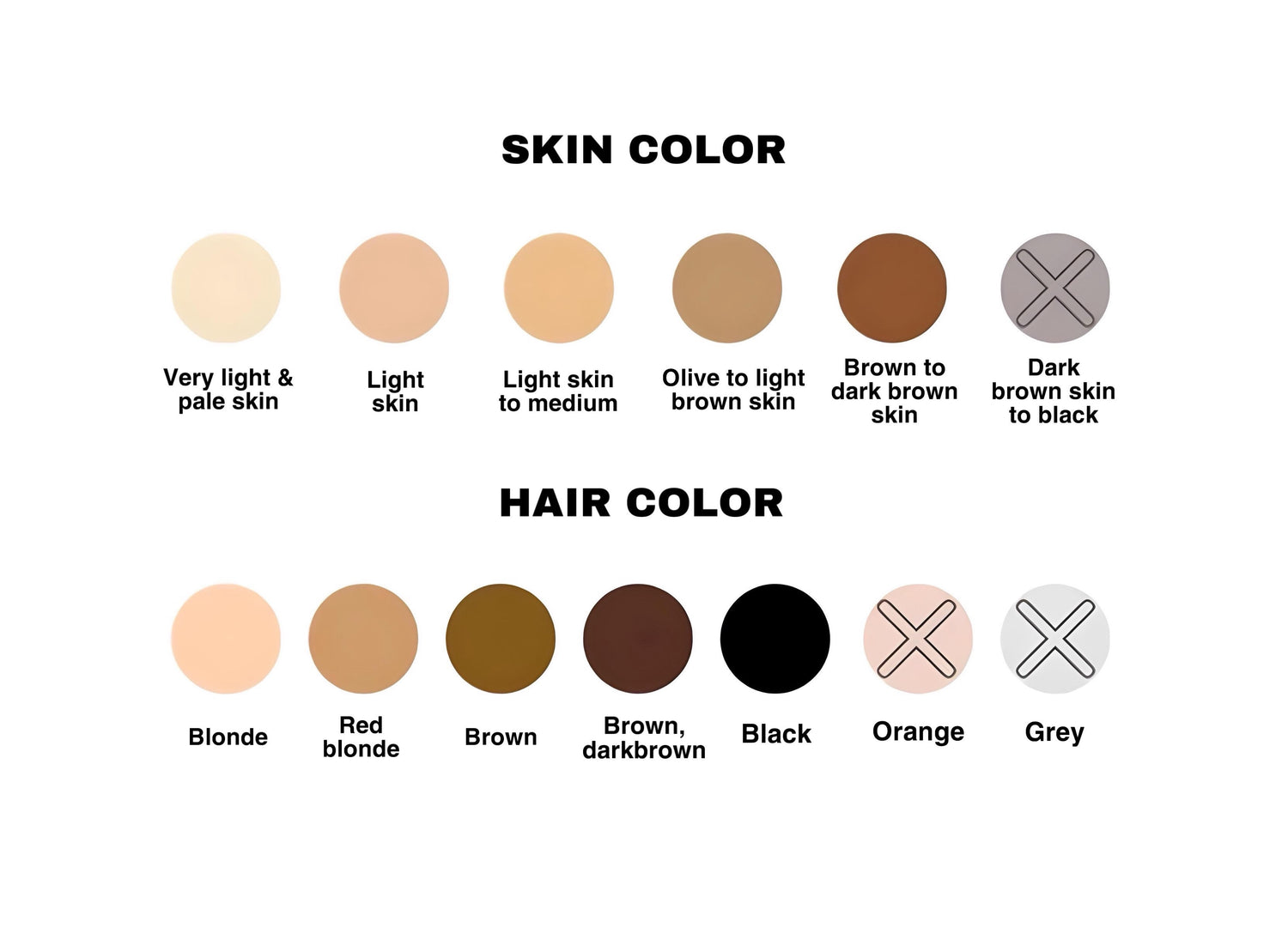 It works best on dark blonde to black hair and skin tones I–V on the Fitzpatrick scale. Not recommended for red, grey, or very light blonde hair, or very dark skin tones.